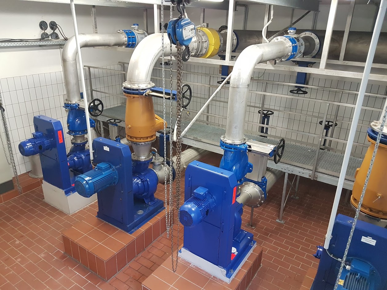 Lieferung und Montage von heraushebbaren Prozessluft-Teller-Belüfter für drei Rundbecken (BB 2 bis BB 4), Umwälzaggregate (Horizontal- und Vertikal-Rührwerke) für die Belebungsbecken und das Schlammkontaktbecken sowie Luft-Rohrleitungen. - Erweiterung Rücklaufschlamm-Pumpwerk
