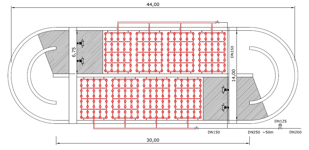- Lieferung und Montage einer bedarfsorientierten Trennung der Prozessluftsammelleitung zur Einzelversorgung der Belebungsbecken,